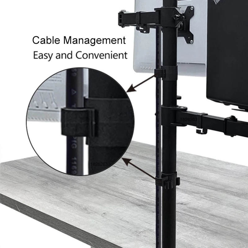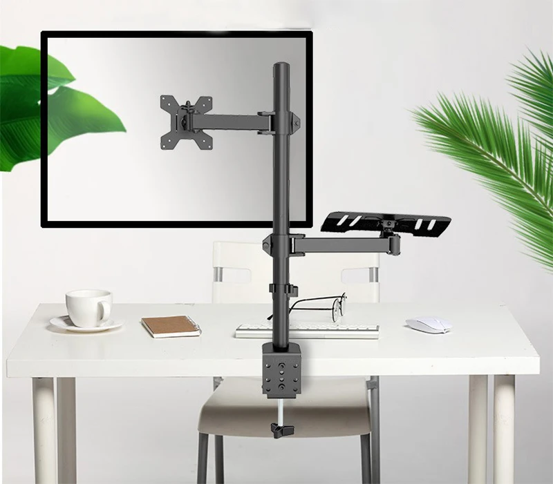 M076 Dual LCD Monitor Desk Mount Fully Adjust Stand with Extra Laptop Tray for Laptop Notebook up to 17" and Screen up to 32"