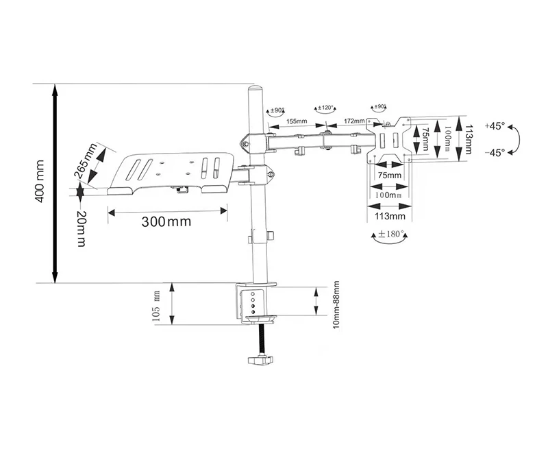 Full Motion Mount- Monitor+Laptop Easily Tilt, Swivel and Rotate